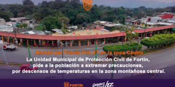 Ante el ingreso del Frente Frío número 27 al estado de Veracruz, la noche de este mismo viernes, la Unidad Municipal de Protección Civil de Fortín, llamó a la población a extremar precauciones, al referir que, provocará marcados descensos de temperaturas en la zona montañosa central.