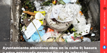 La falta de supervisión del Ayuntamiento ha convertido la obra de la calle 9, esquina con avenida 6, en un foco de infección, donde el agua estancada y la basura acumulada se mezclan entre las banquetas que albergarían los transformadores de la Comisión Federal de Electricidad (CFE).