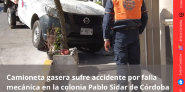 La mañana de este día se registró un accidente en la avenida 16, a la altura de la calle 9A, en la colonia Pablo Sidar de la ciudad de Córdoba, luego de que una camioneta repartidora de gas presentara una aparente falla mecánica.