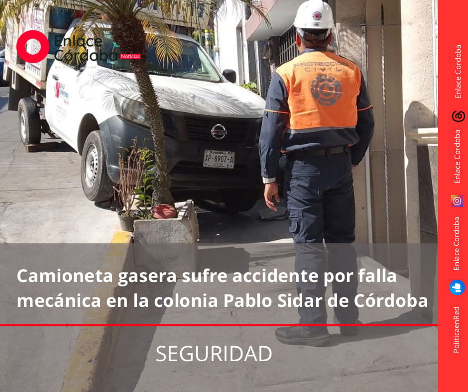 La mañana de este día se registró un accidente en la avenida 16, a la altura de la calle 9A, en la colonia Pablo Sidar de la ciudad de Córdoba, luego de que una camioneta repartidora de gas presentara una aparente falla mecánica.