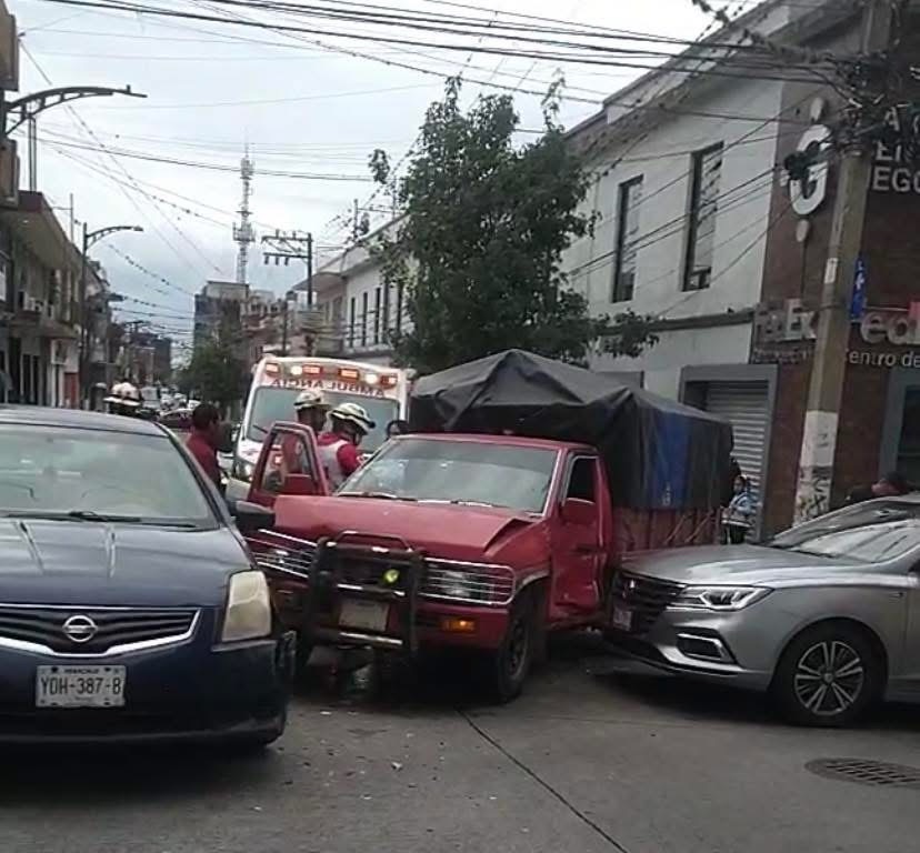En el percance participaron una camioneta estaquitas, un automóvil Sentra azul y un vehículo sedán, dejando como saldo dos personas lesionadas y cuantiosos daños materiales.