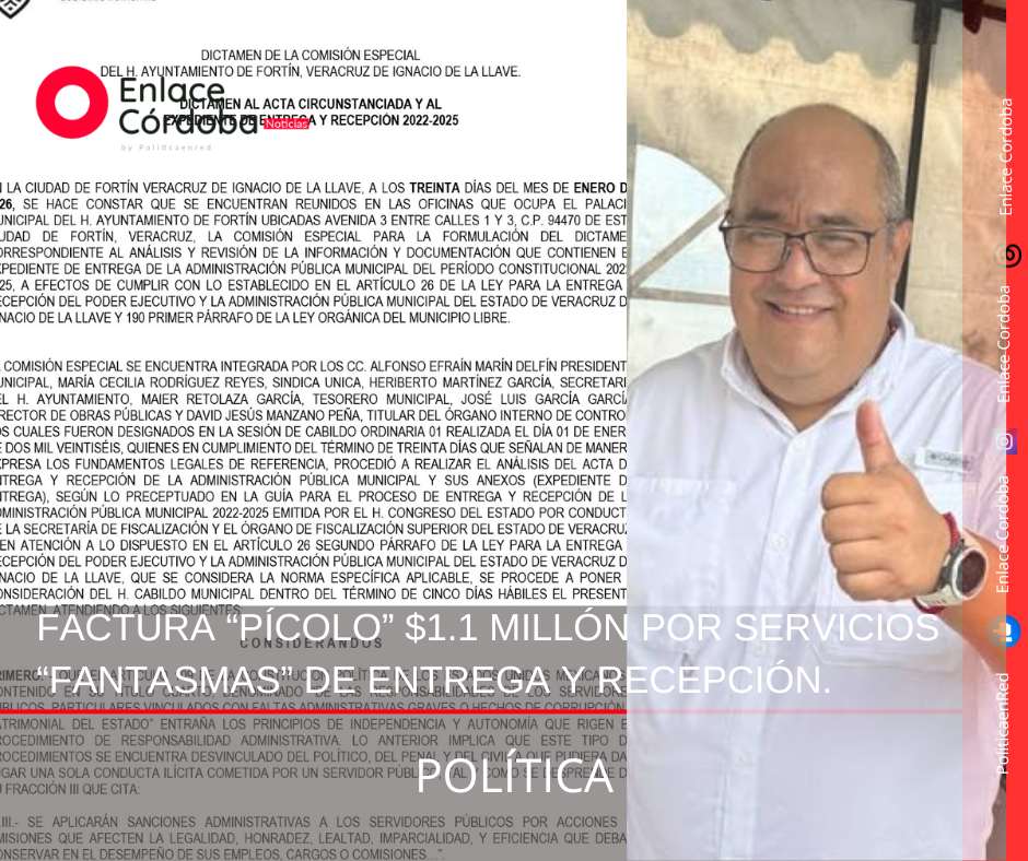 Así, ya están facturando en $1,102,000.00 el “Pago de Servicios Profesionales para Llevar Acabo la Revisión de la Entrega Recepción 2025 – 2026”; pese a que ellos mismos -en diciembre- presumieron que dicho proceso legal y administrativo lo estaban realizando Jesús Flores (actual regidor), Juan Carlos Fernández Zulueta (abogado asesor de MC) y David Jesús Manzano Peña (actual Contralor Municipal), entre otros.