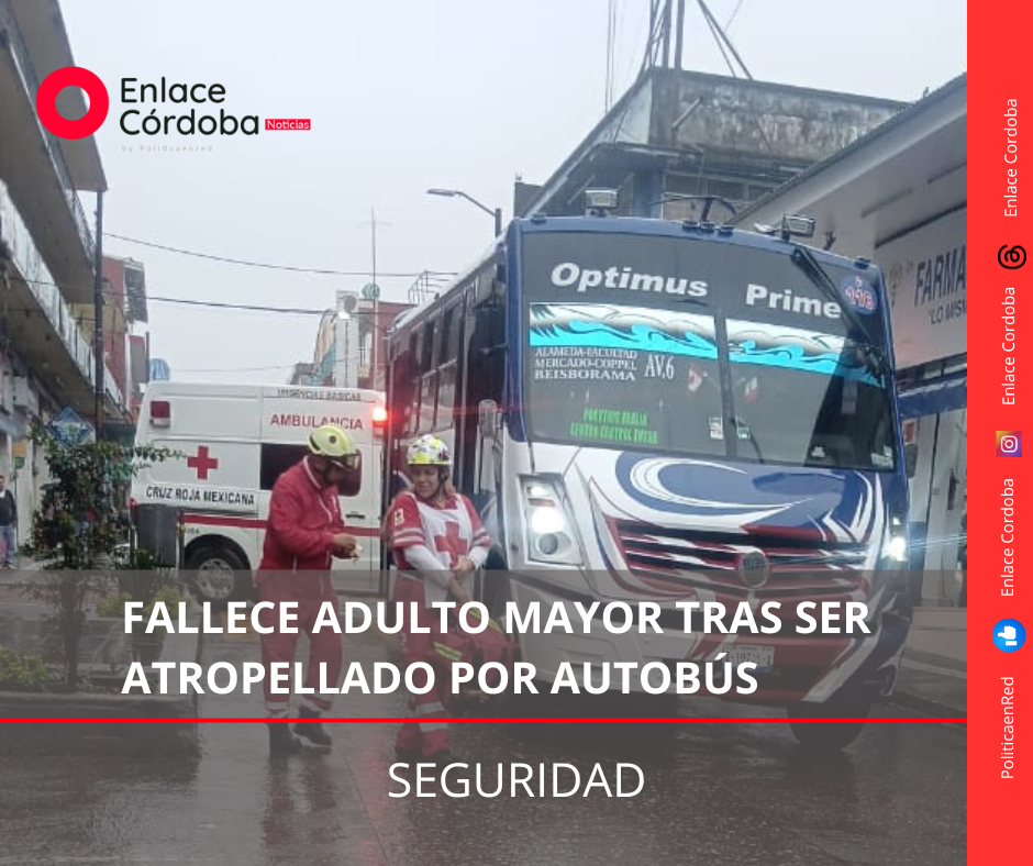 Córdoba, Ver.— La mañana de este lunes, un adulto mayor perdió la vida luego de ser arrollado por un autobús de pasajeros en el cruce de la avenida 4 y calle 9, en esta ciudad.