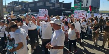 Los manifestantes también visten ropas blancas y pancartas con la exigencia de justicia para Carlos Manzo, quien fue asesinado a las 8:10 de la noche, aproximadamente, del sábado por un joven de 17 años de edad que a quemarropa le acertó seis de siete tiros, con una pistola calibre 0.9 milímetros.