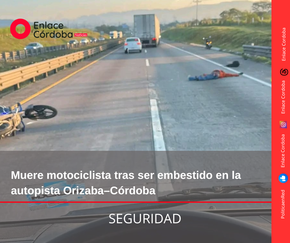 Un motociclista perdió la vida la mañana de este viernes luego de sufrir un aparatoso accidente sobre la autopista Orizaba–Córdoba, a la altura de la congregación Sumidero, luego de presuntamente ser impactado por un vehículo que se dio a la fuga.
