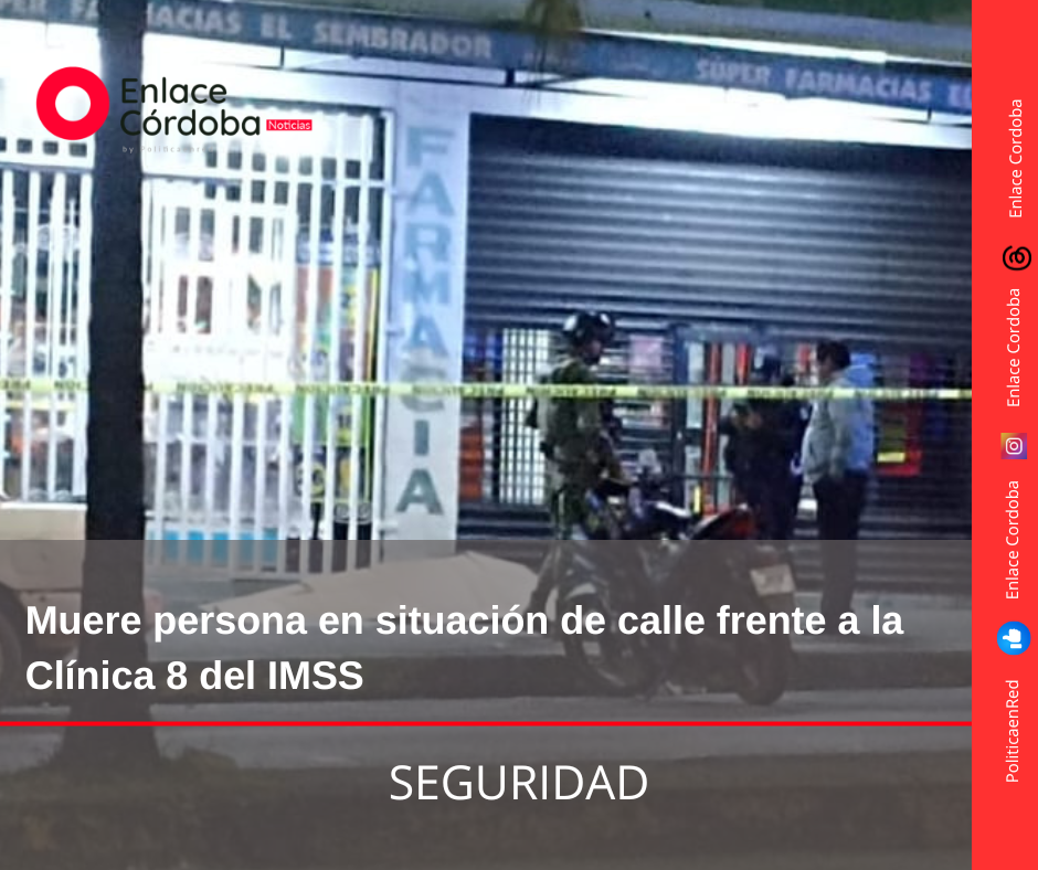 Córdoba, Ver.- Durante los primeros minutos de este jueves 2 de enero, una persona en situación de calle fue localizada sin vida sobre la avenida 11, entre calles 1 y 2, justo frente a la Clínica 8 del IMSS, lo que generó la movilización de cuerpos de emergencia.