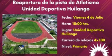 Córdoba, Ver., 02 de julio de 2025.- Con un evento recreativo de relevos a nivel primaria donde participarán 16 equipos de diferentes escuelas de la zona, será reaperturada por parte de las autoridades municipales la pista de atletismo de la Unidad Deportiva Huilango. Dicha actividad queda sujeta si las condiciones climatológicas son favorables.