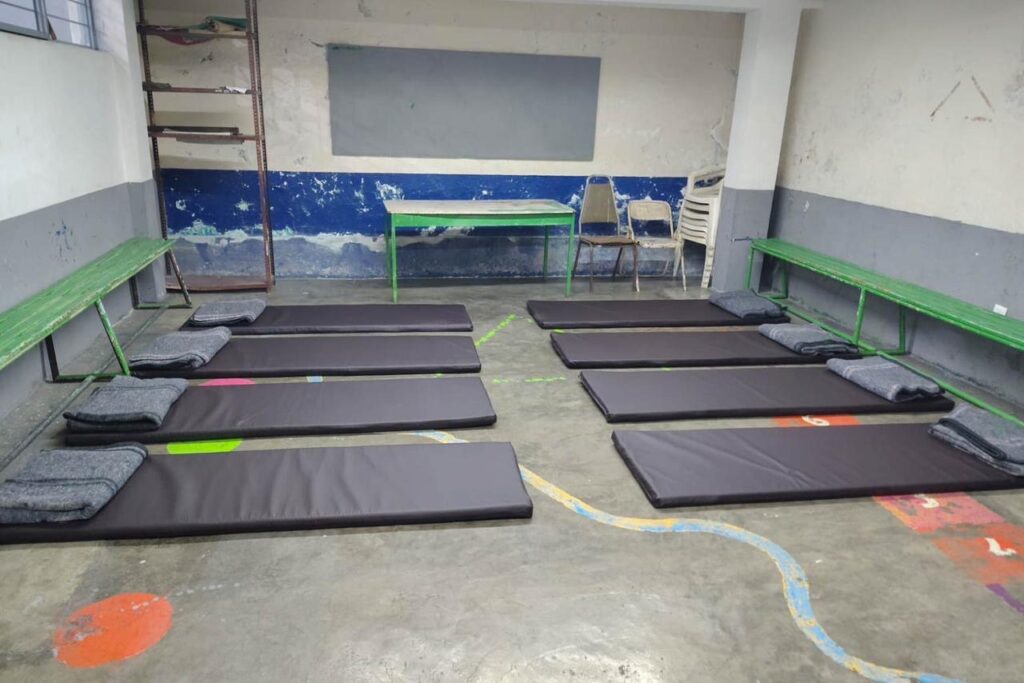 Albergue temporal habilitado en el Gimnasio de San José para personas en situación de calle