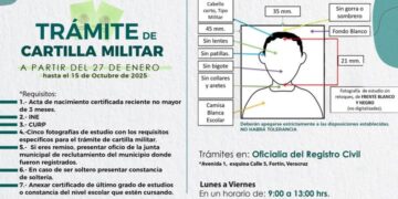 05 de junio de 2025, Fortín, Ver. – La Oficialía del Registro Civil de Fortín mantiene vigente el trámite para obtener la Cartilla Militar de Identidad del Servicio Militar Nacional No Liberada Clase 2007 y remisos.