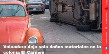 Un aparatoso accidente se registró la mañana de este sábado en la calle 5, entre avenidas 23 y 25 de la colonia El Carmen, donde un vehículo particular terminó volcado tras intentar esquivar a otro automóvil mal estacionado.